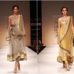 Take a look at Payal Singhal’s “Bridal Fantasy” collection. Gorgeous shades of cream, ash green, champagne and many more flowed across the runway presented in intricate tulle, brocades and silk. With a wide range of lenghas, suits and dresses, there is something for everyone!